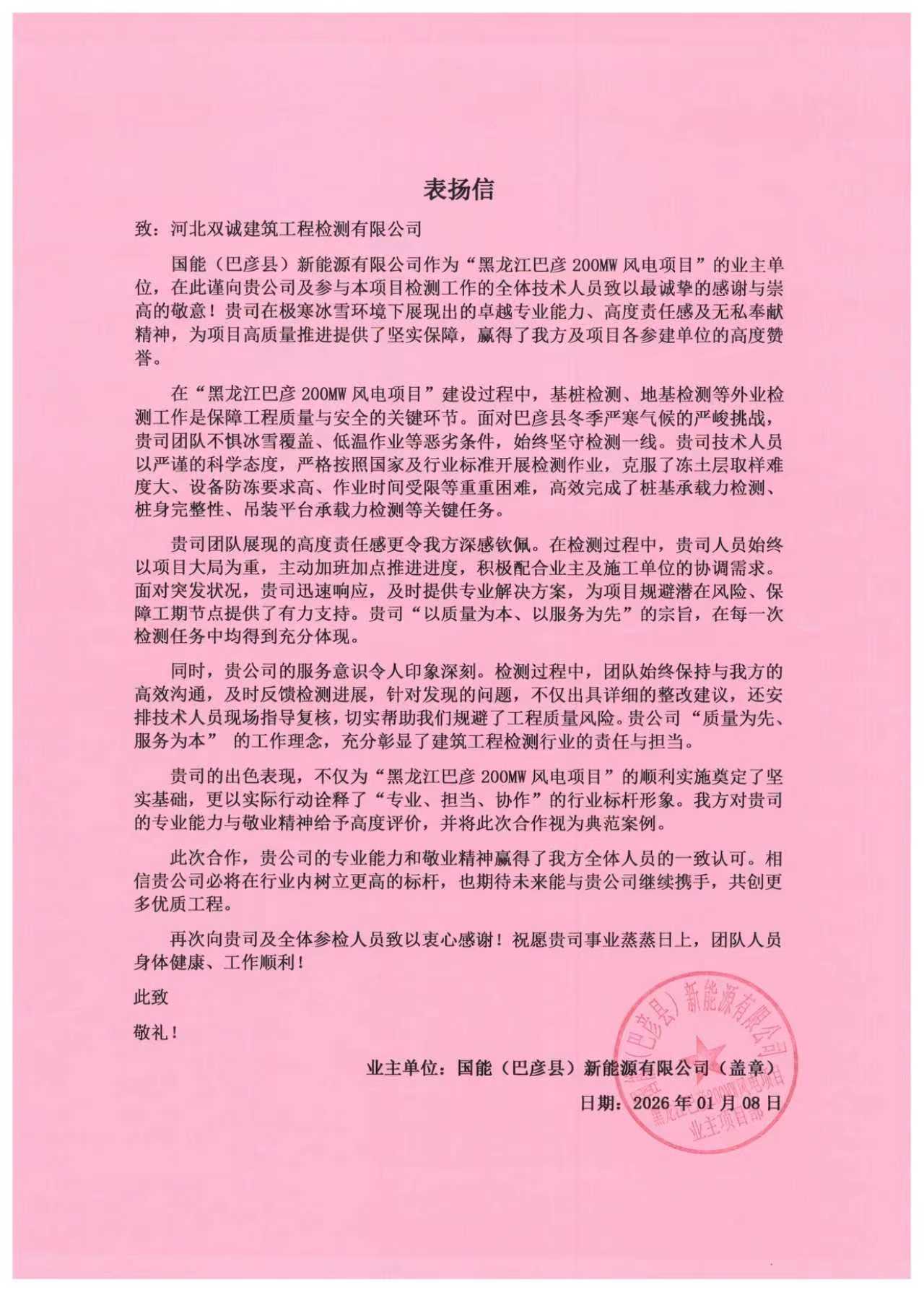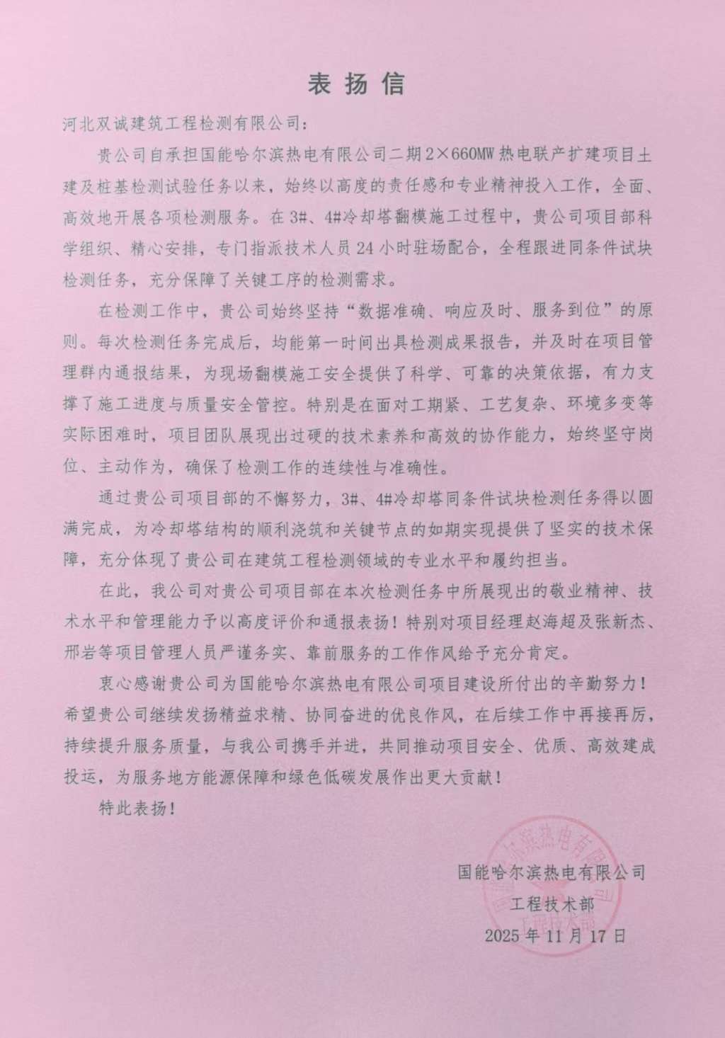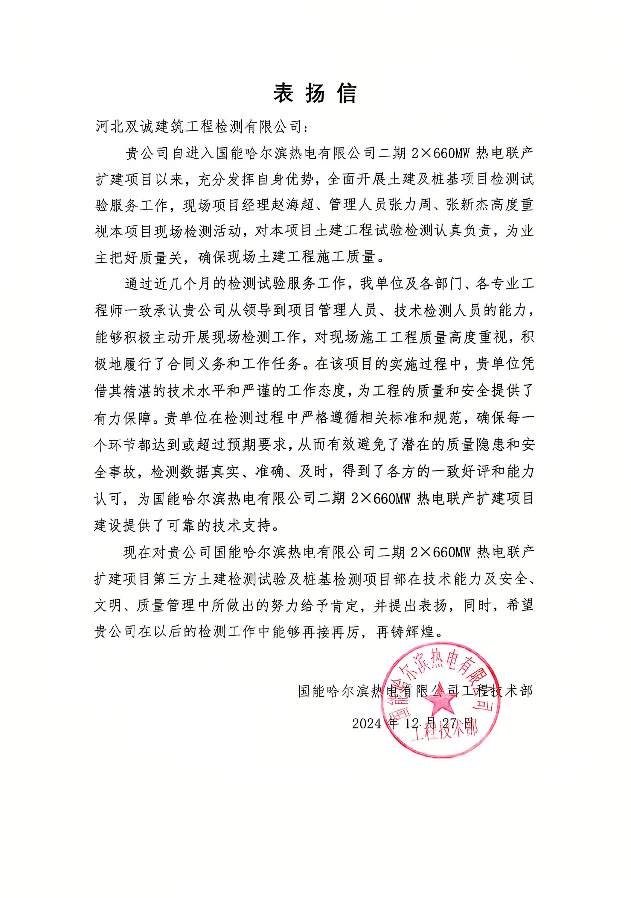 河北双诚建筑工程检测有限公司前身为“河北省建筑工程质量检测中心地基检测所”,成立于1989年,是河北省最早开展建设工程质量检测的单位之一,也是河北省建设厅最早一批事业单位改企单位。改企后,经过公司全体员工不懈努力、艰苦奋斗,公司整体实力不断提升,在河北省建设工程检测领域具备了较高的知名度,同时在电力能源、石油化工、航空机场等行业的建设市场也取得了不菲业绩;近几年我公司更是紧跟国家一带一路建设脚步,在巴基斯坦、伊朗、印尼、孟加拉、尼日利亚等国家先后承接检测业务,并取得了参建单位的一致好评。